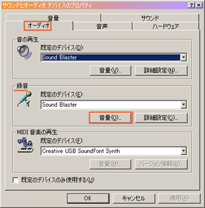 オーディオタブを開き録音のところを確認します。